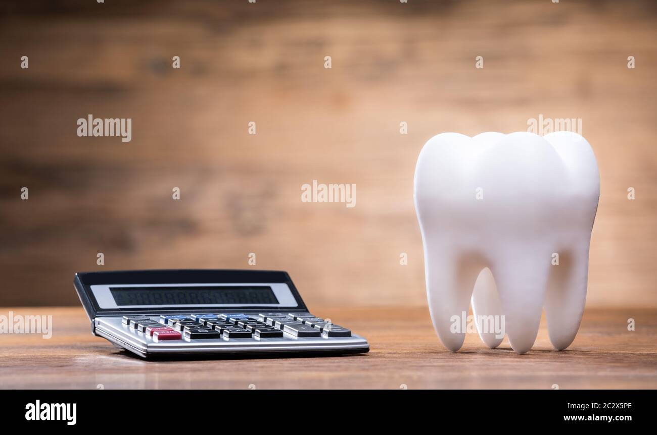 Dental Tooth Implant Near Teeth Cost Calculator At Dentist Desk Stock Photo Alamy